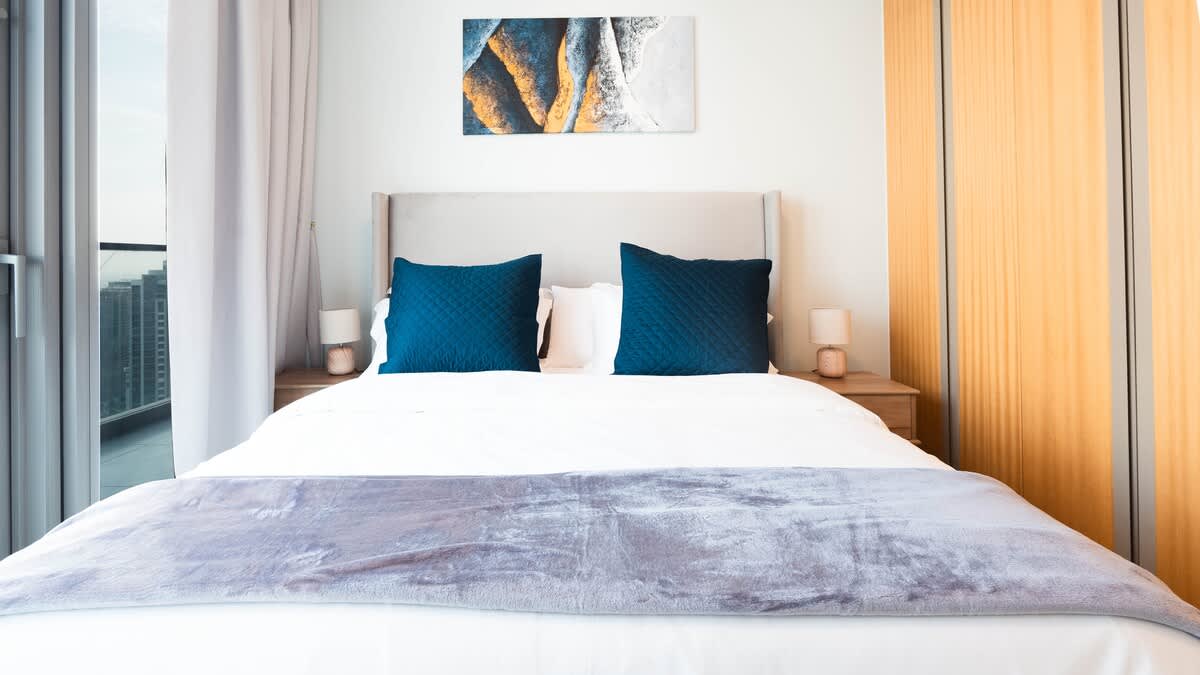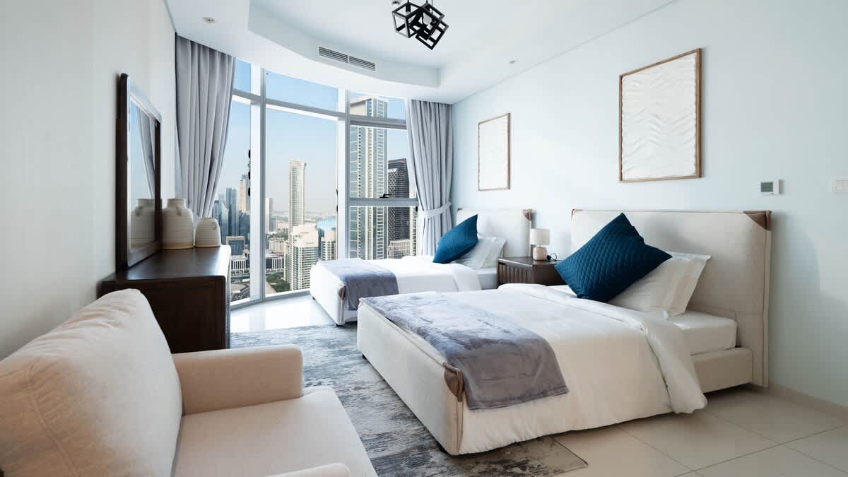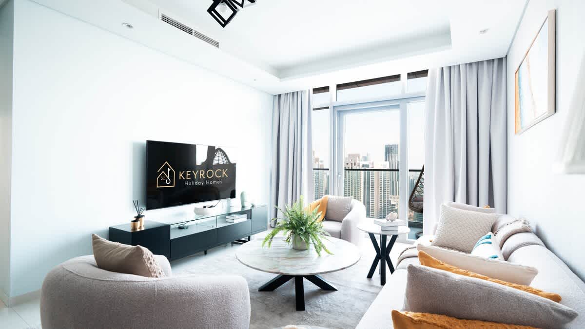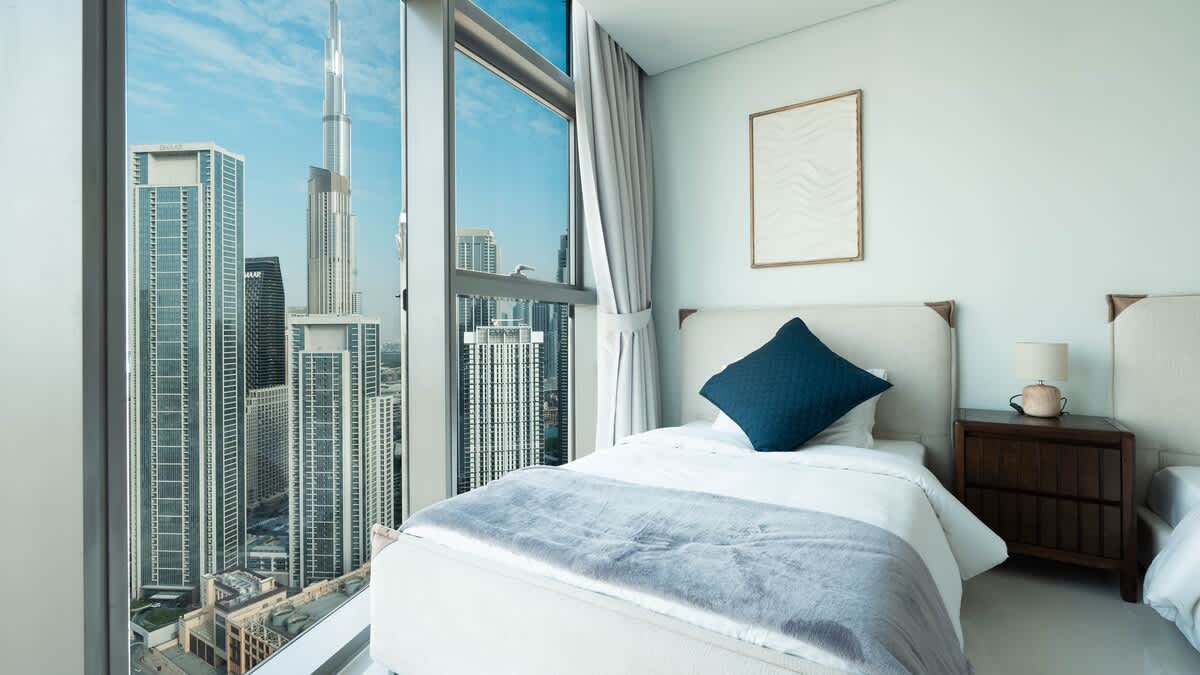 Experience front-row views of the Burj Khalifa from this elegant Paramount Downtown 3BR apartment. Step onto your private balcony to admire Dubai’s skyline, relax in spacious modern interiors, and enjoy curated comfort throughout your stay. Cool off in the outdoor pool, recharge in the fully equipped gym, or unwind in style with the city’s most iconic landmark always in sight — perfect for families or groups seeking a memorable Dubai escape.