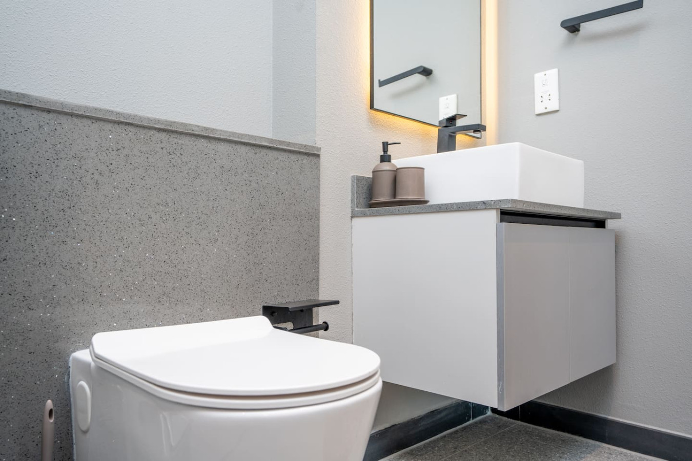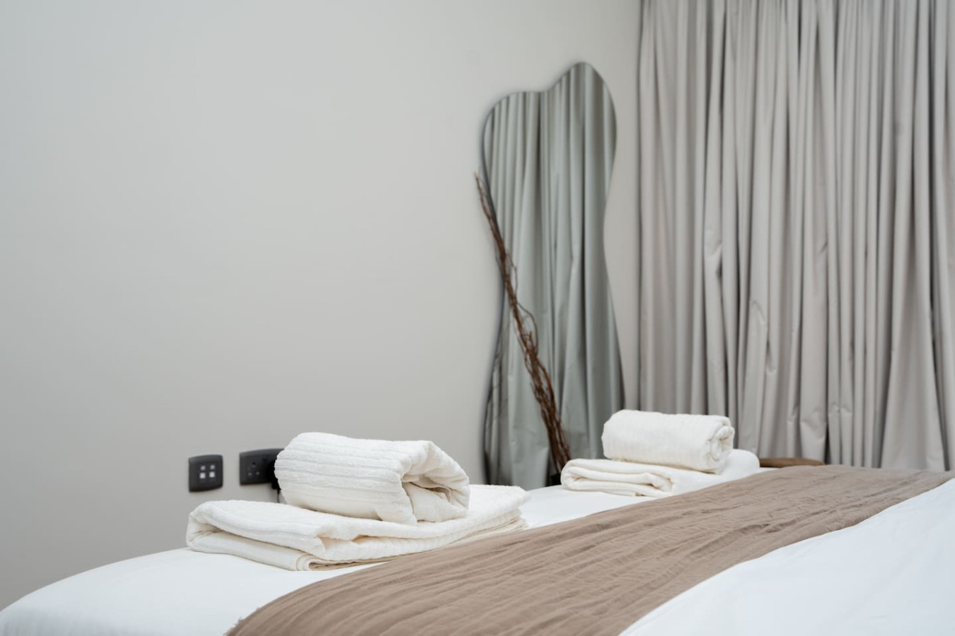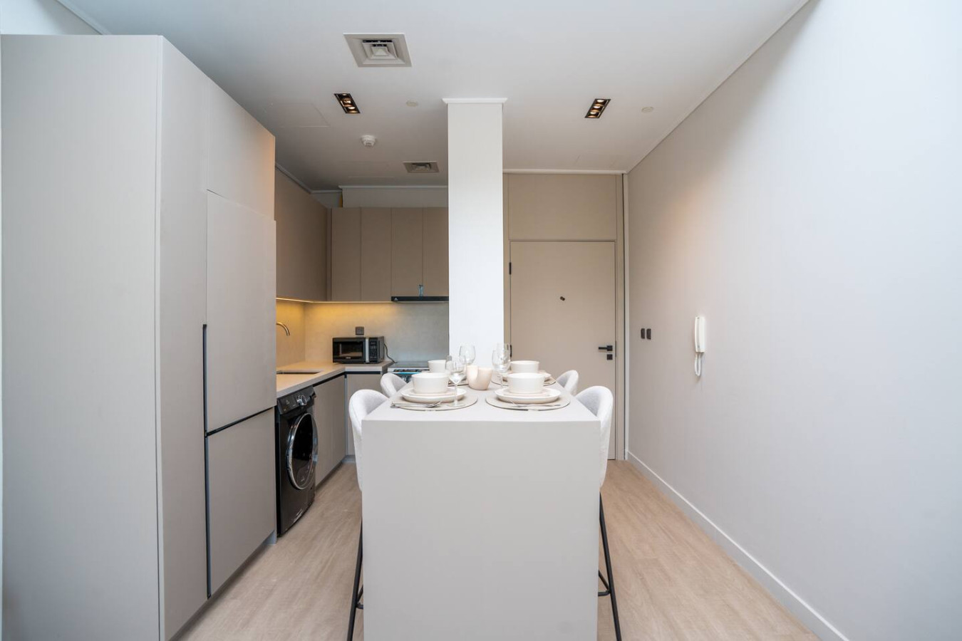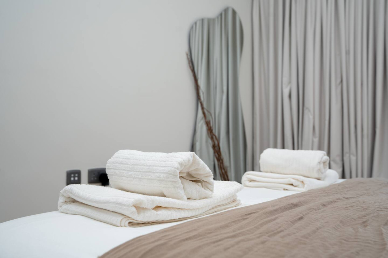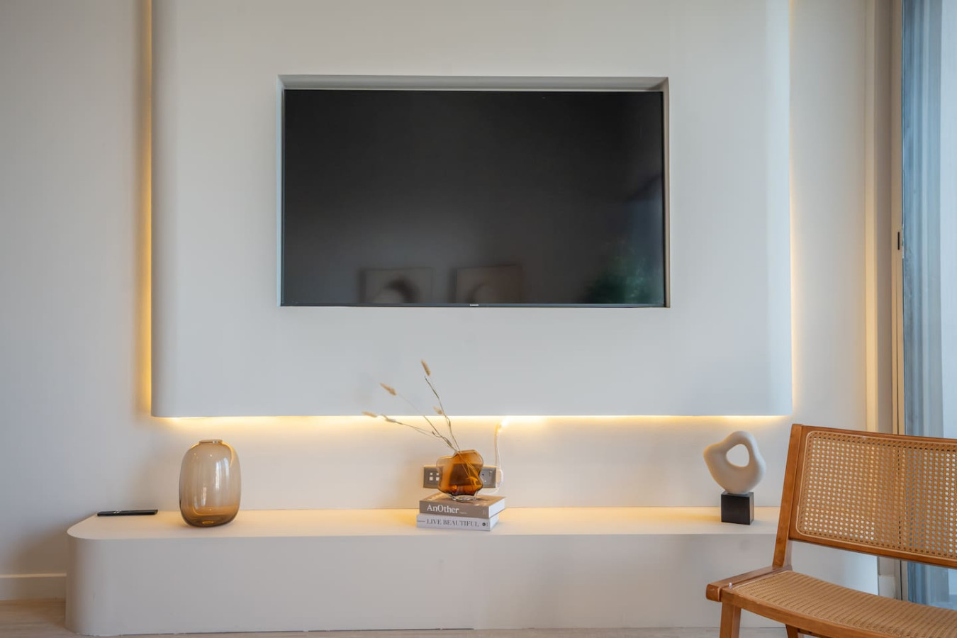 A sleek bathroom with premium fittings and fresh towels adds to the apartment’s charm. Step out onto the private balcony to enjoy serene neighborhood views, perfect for a quiet morning coffee or evening relaxation.