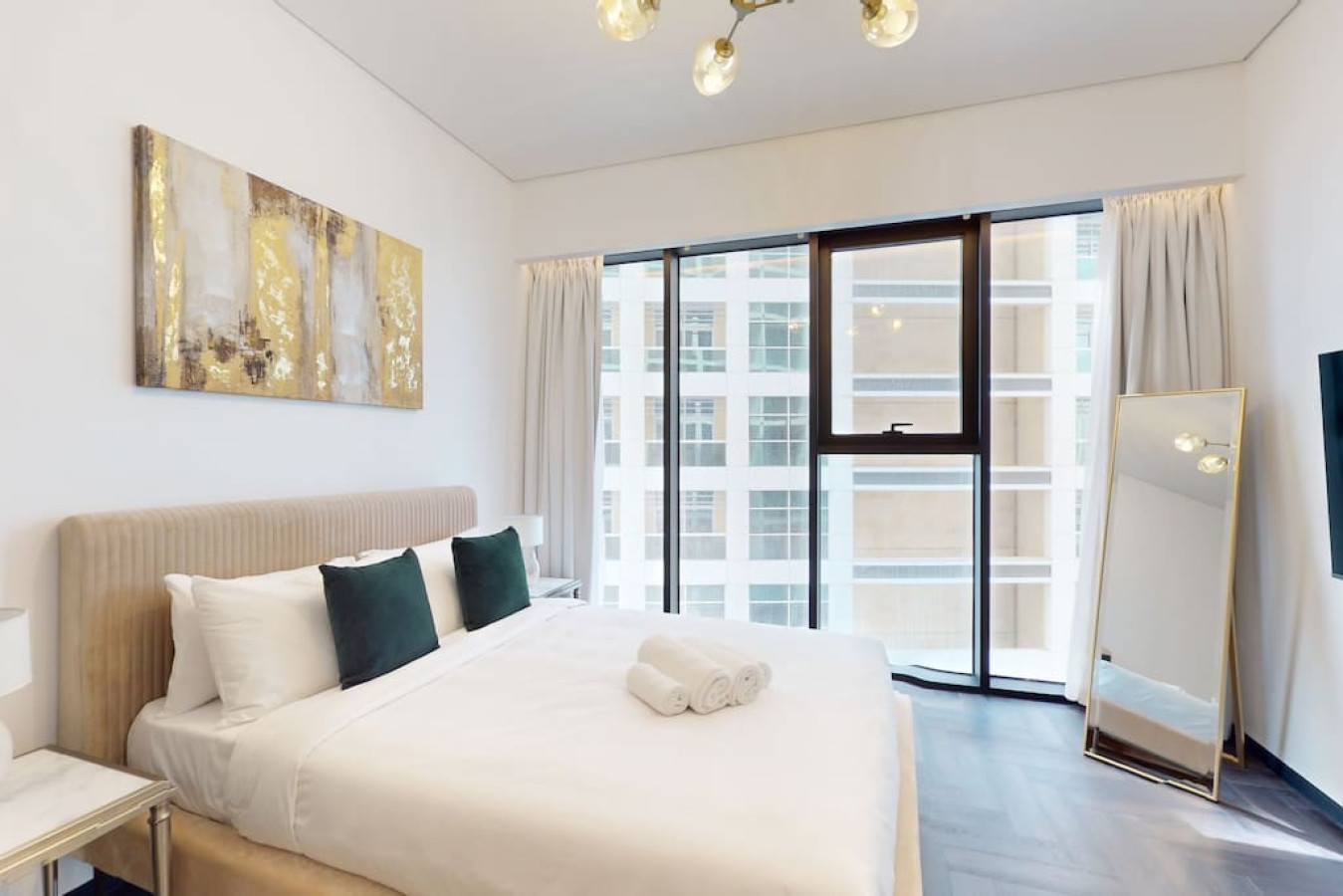 The apartment offers high speed free Wi-Fi throughout with average speeds of 250mbps, air conditioning and household amenities to ensure a comfortable stay. Located 10min from Downtown Dubai and the Burj Khalifa, the property features a fitness Centre and free private parking.