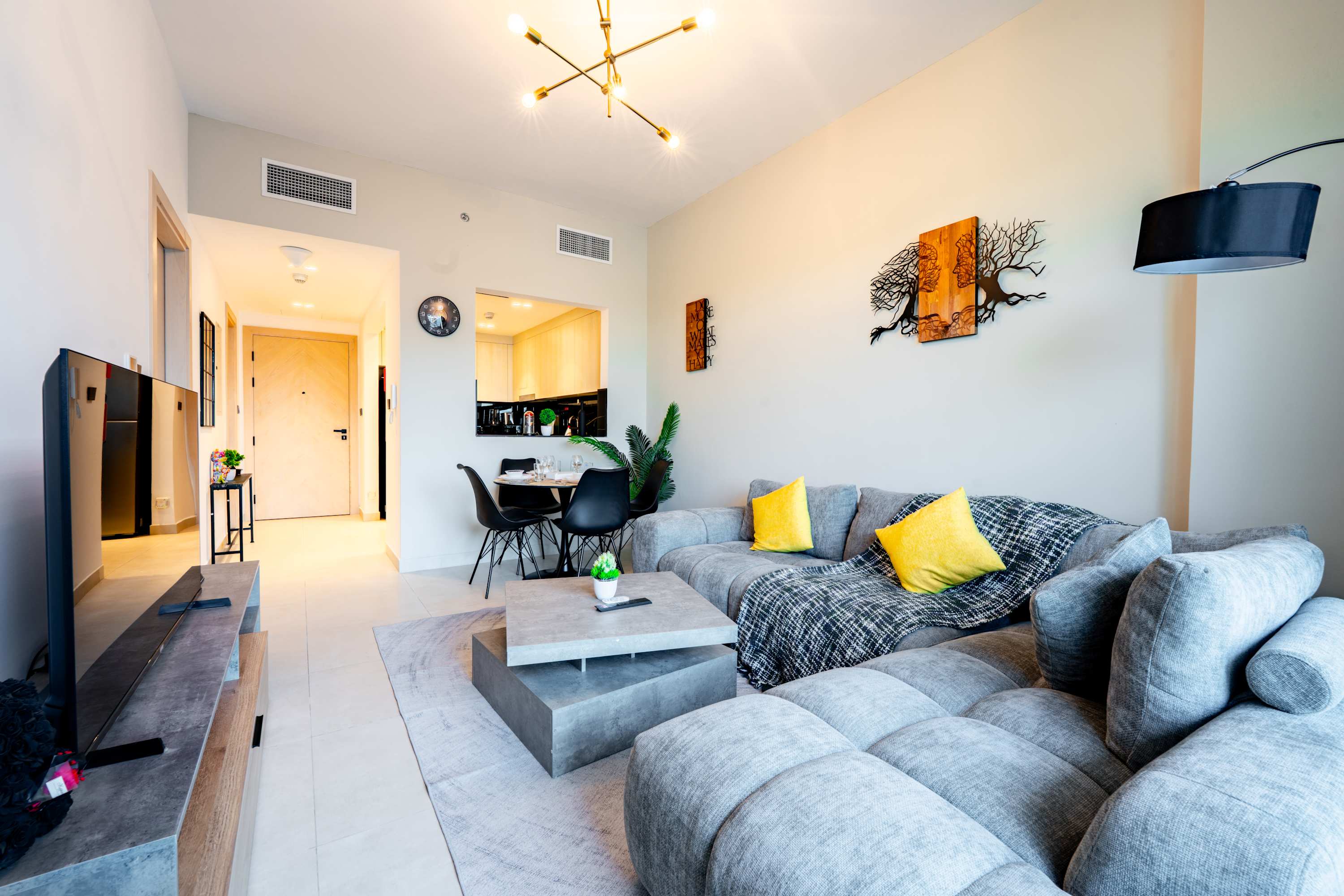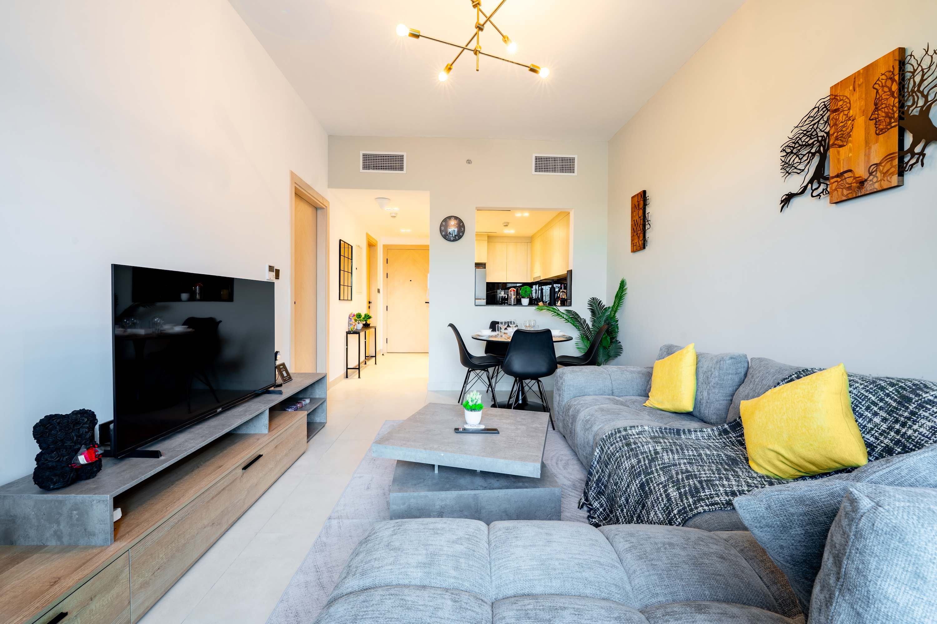 Discover your perfect short-term stay at Binghatti Jasmine, Jumeirah Village Circle (JVC). This stylish fully furnished apartment combines modern comfort with a prime location, making it the ideal choice for business travelers, couples, or small families.
