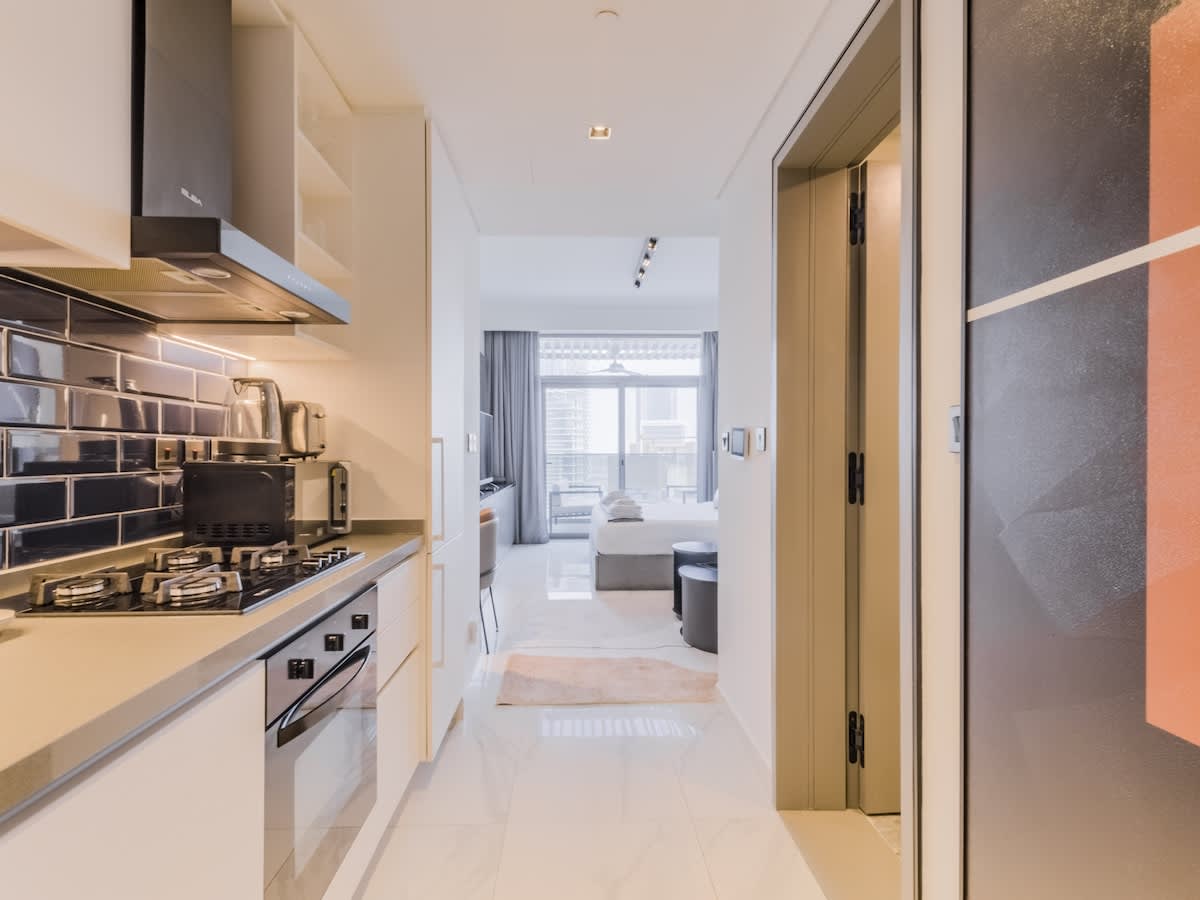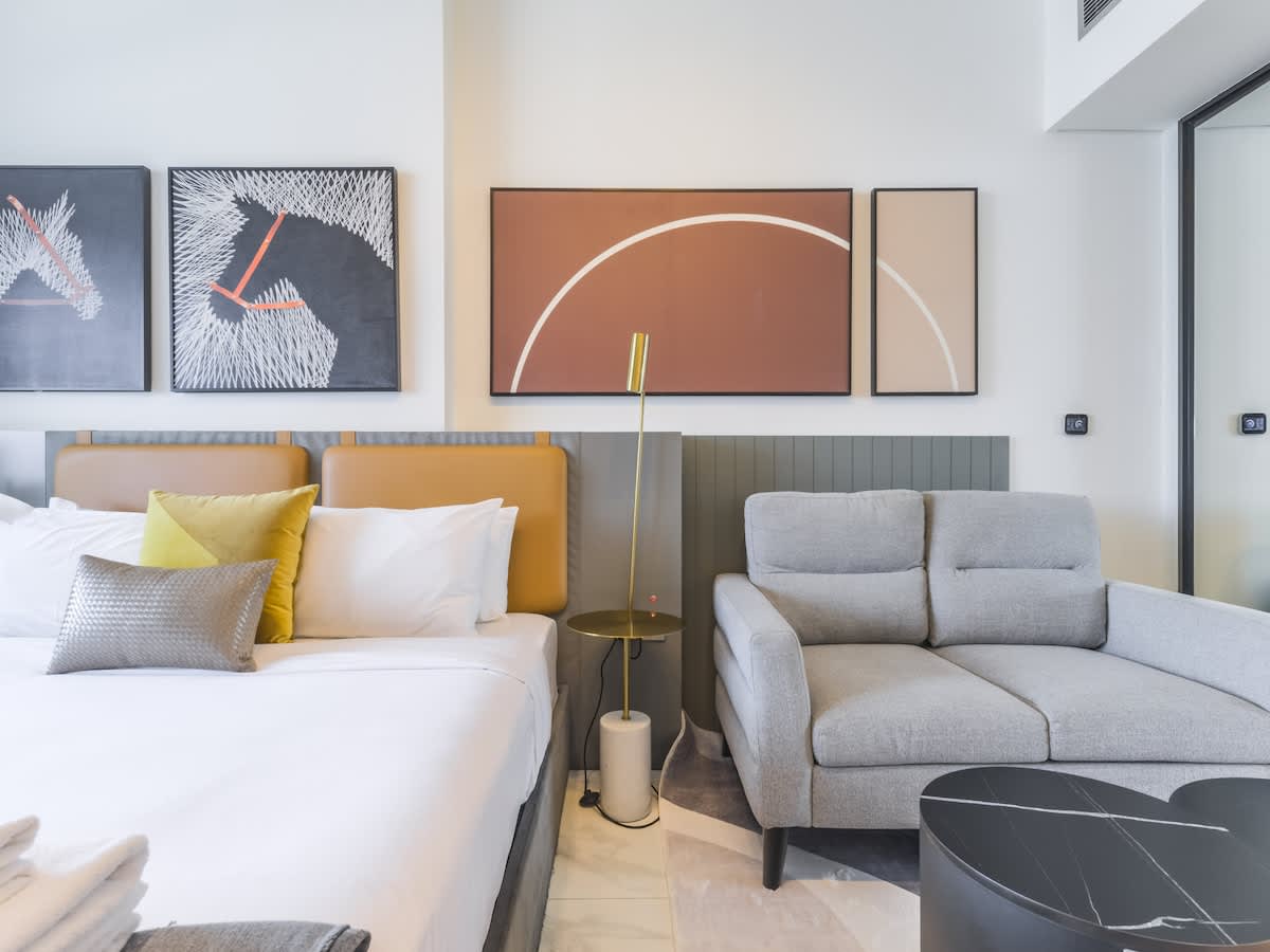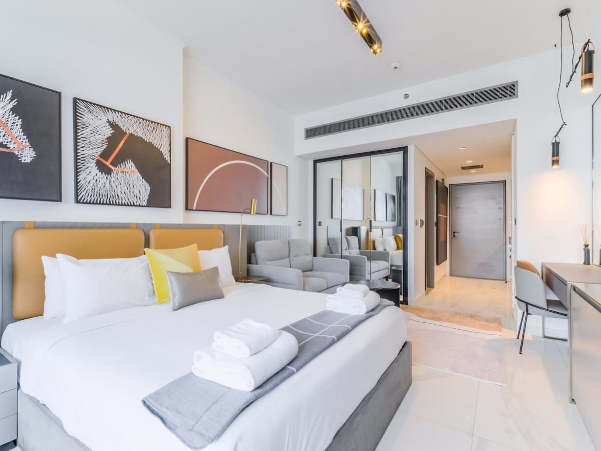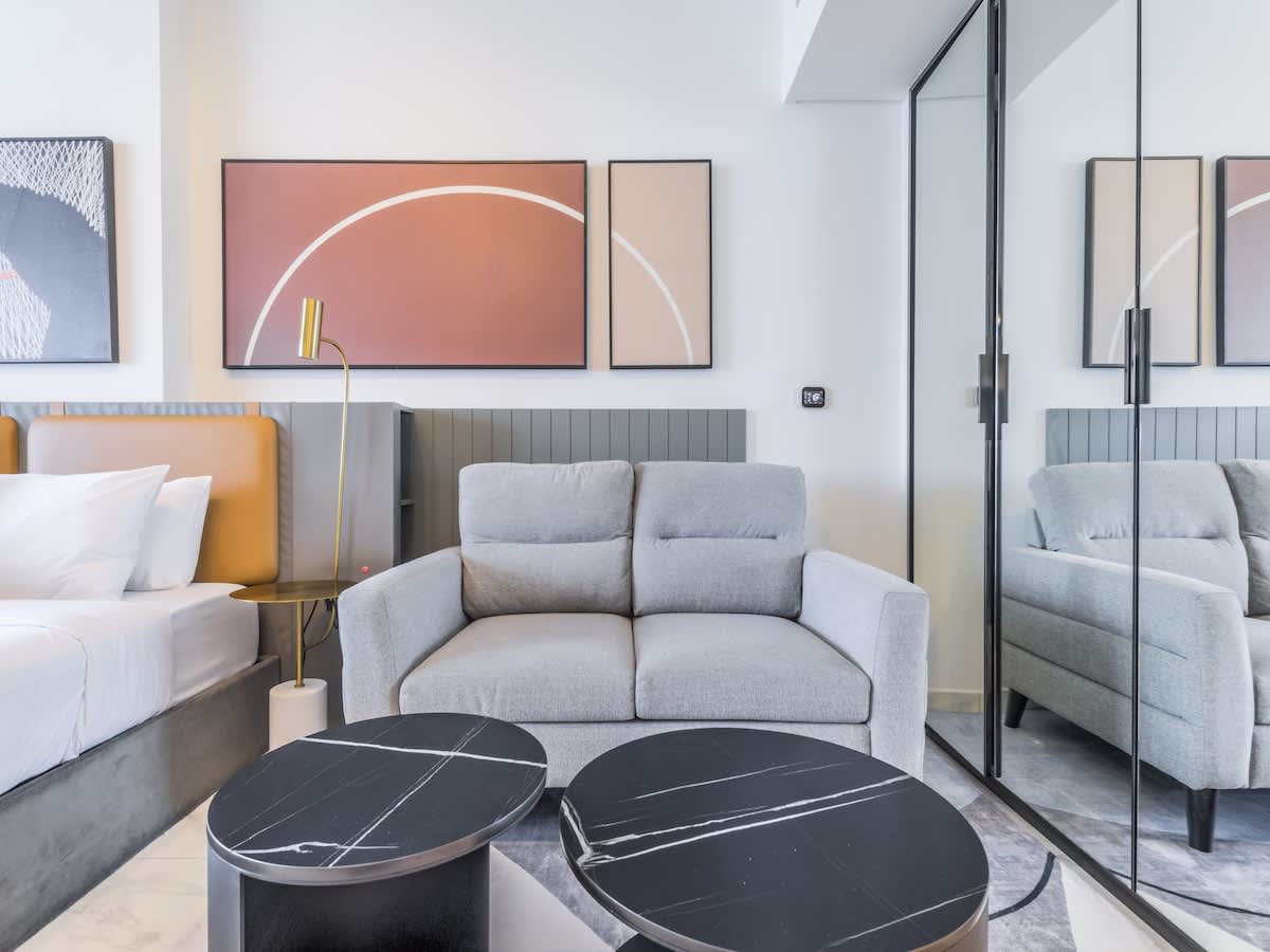 Located in the prestigious MAG 318 residence, this spacious studio apartment offers stunning, unobstructed canal views and a serene, upscale atmosphere. Perfectly positioned for travelers, professionals, or couples seeking a short-term stay with comfort and sophistication, this stylish retreat combines modern design with everyday convenience.