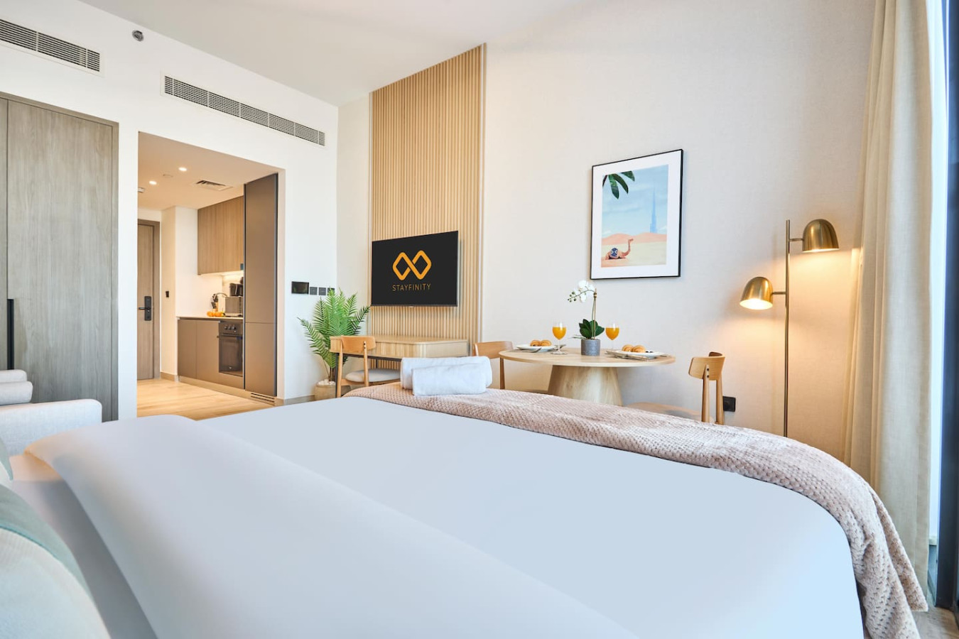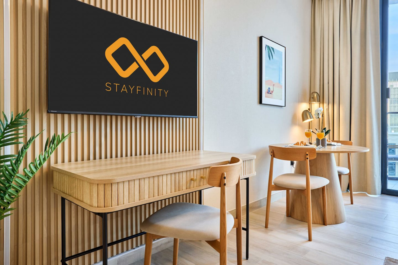 This apartment is managed by Stayfinity Vacation Homes Rentals L.L.C and is located in a residential building, not a hotel unit.