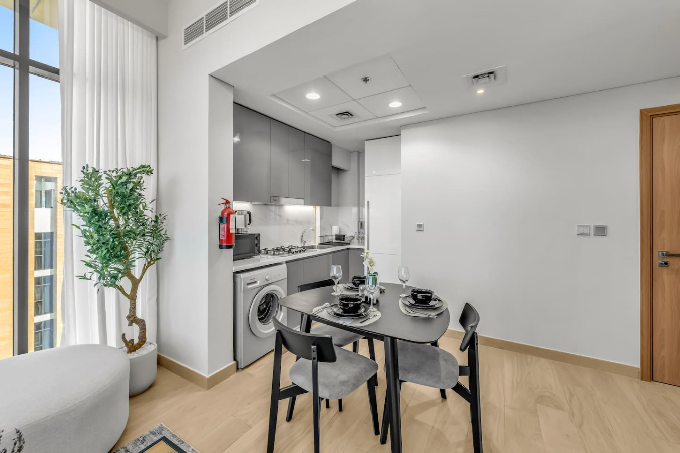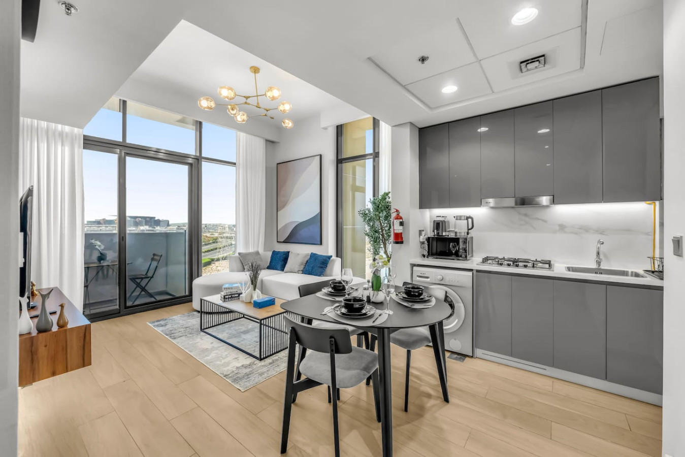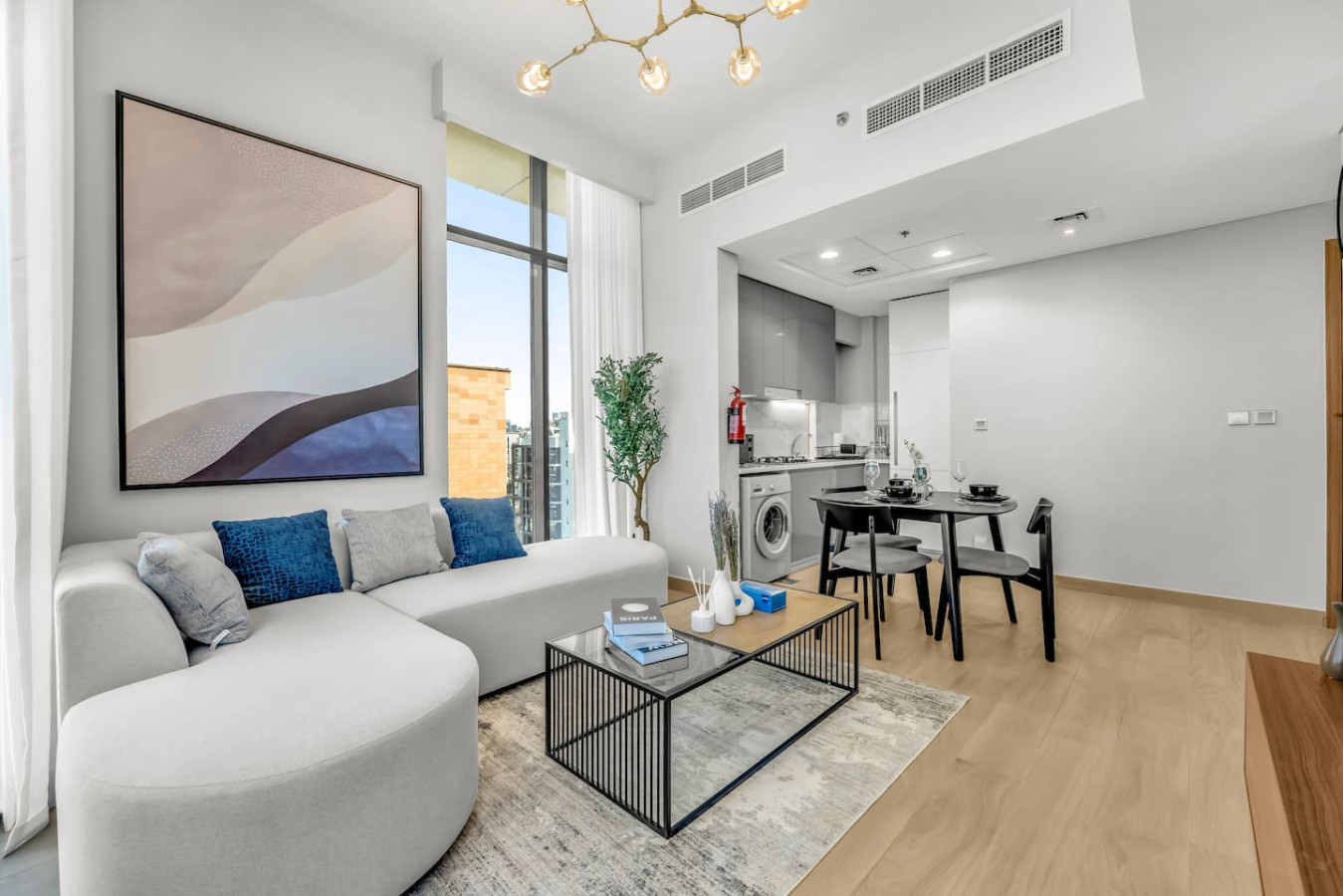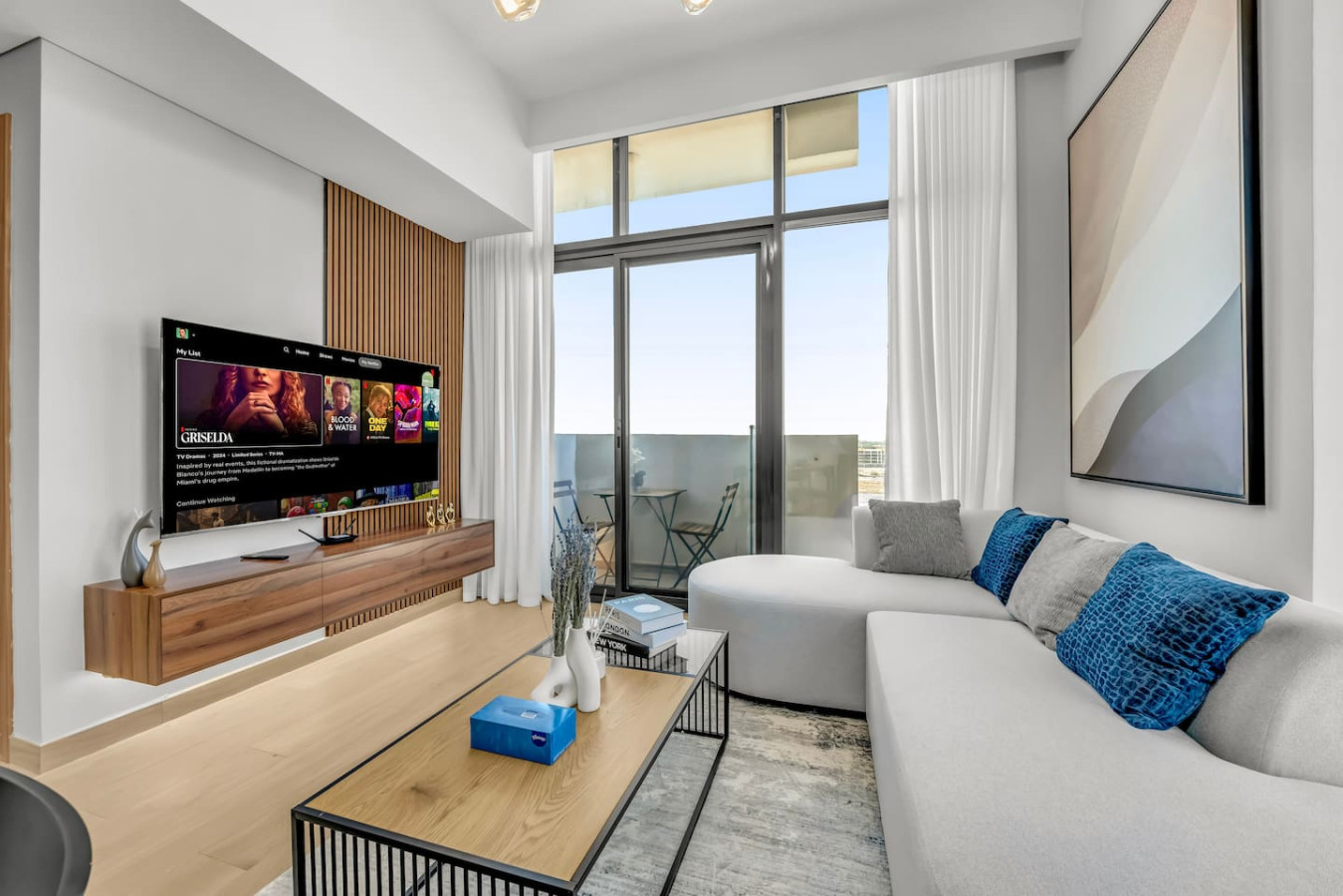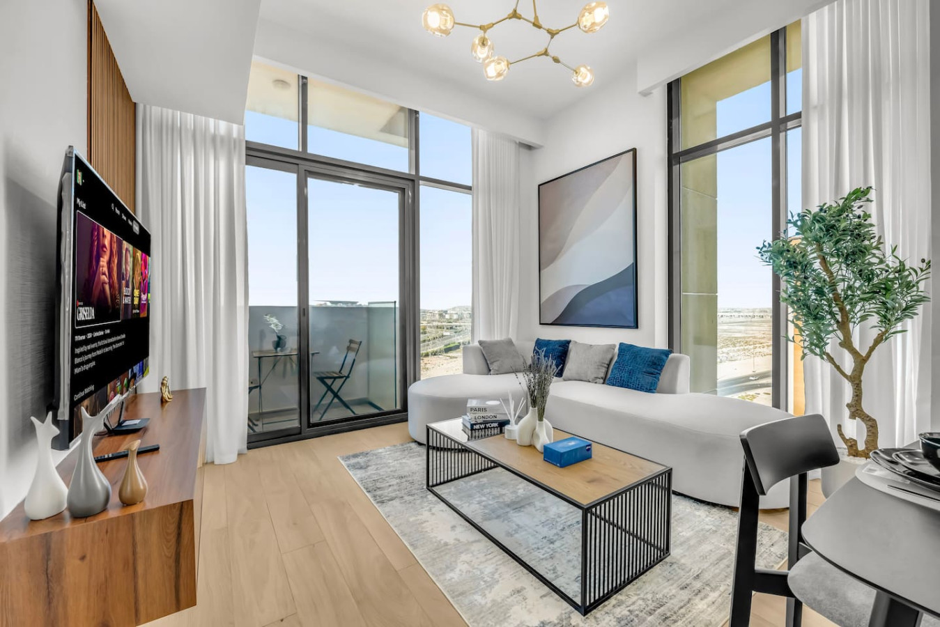 This bright and stylish space features a separate bedroom, spacious living room, fully equipped kitchen, private balcony with lounge area, high-speed Wi-Fi, Smart TV, and self check-in. Guests enjoy free access to the pool, gym, kids’ area, and parking. Perfect for couples, business travelers, or long stays.