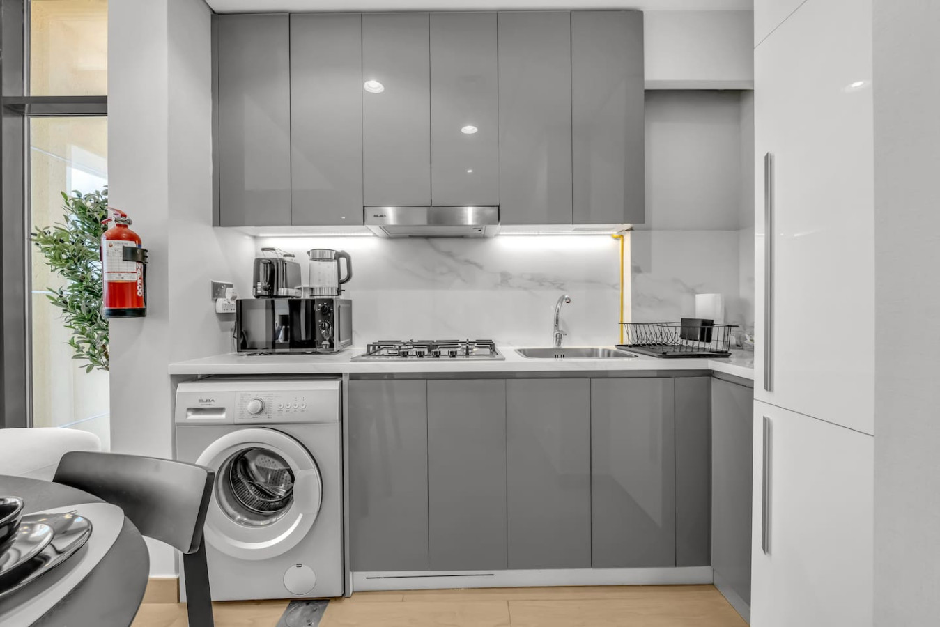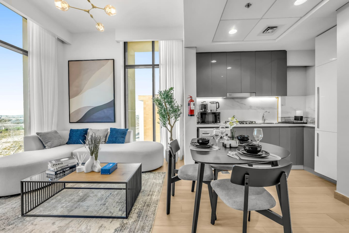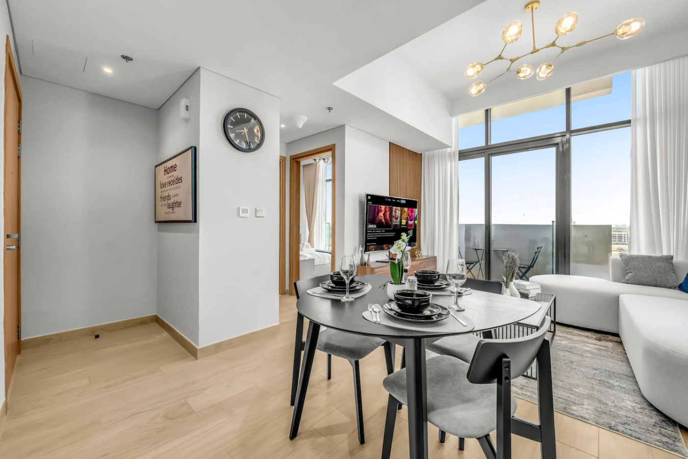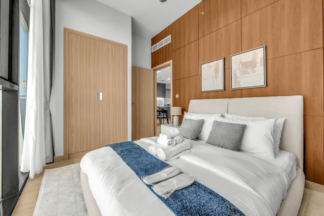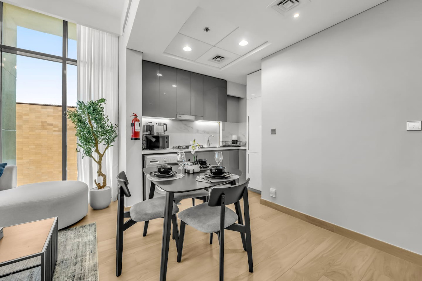 This bright and stylish space features a separate bedroom, spacious living room, fully equipped kitchen, private balcony with lounge area, high-speed Wi-Fi, Smart TV, and self check-in. Guests enjoy free access to the pool, gym, kids’ area, and parking. Perfect for couples, business travelers, or long stays.
