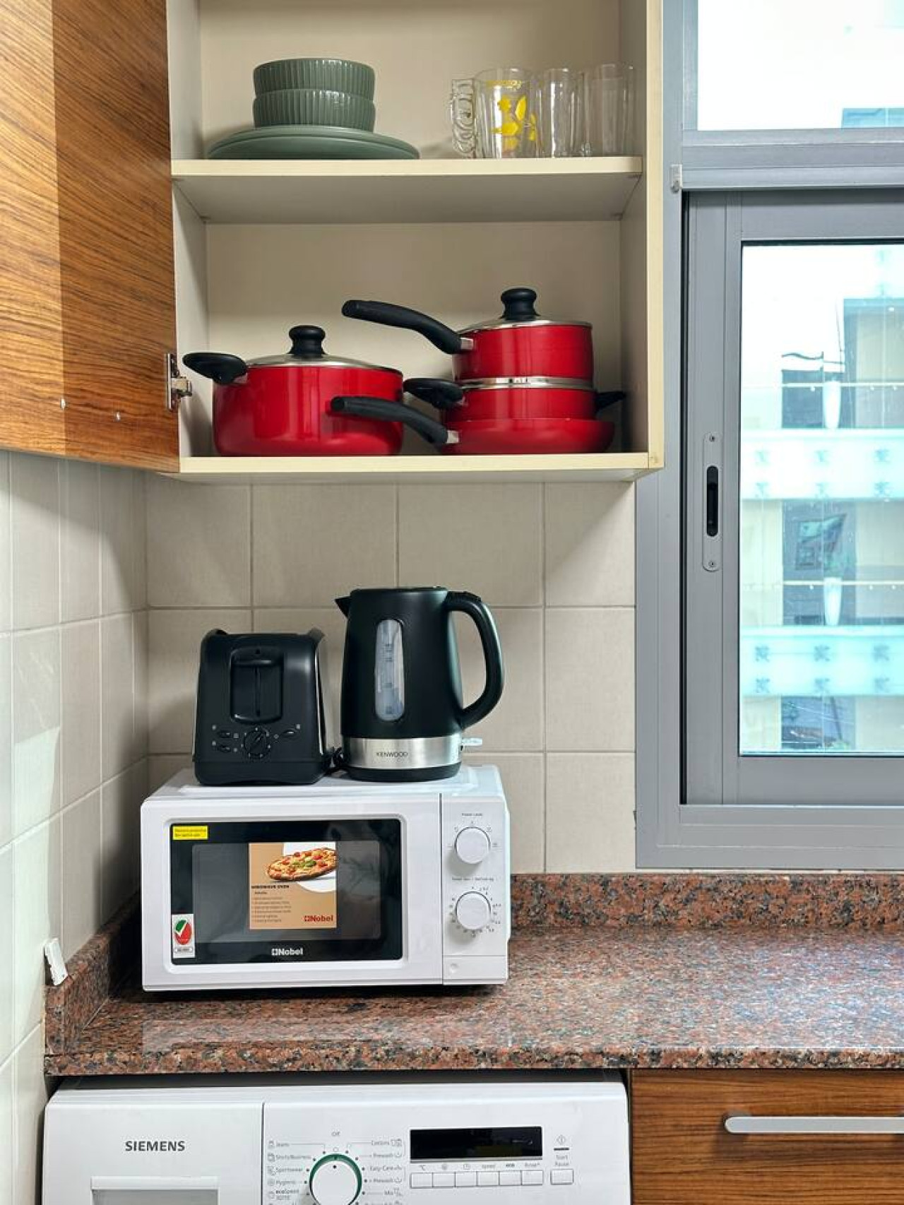 > Fully equipped with necessary appliances and cookware