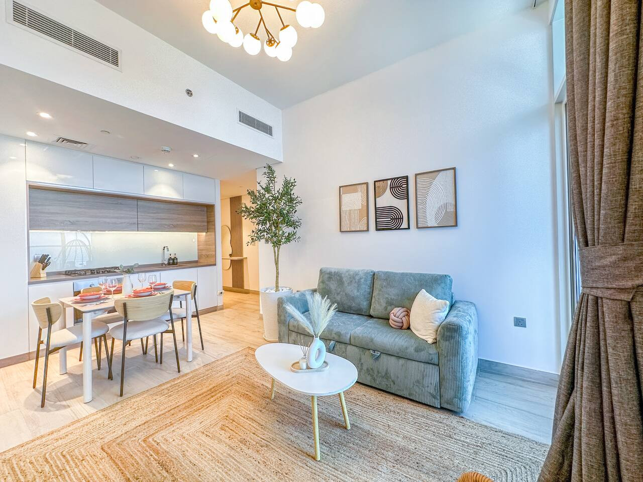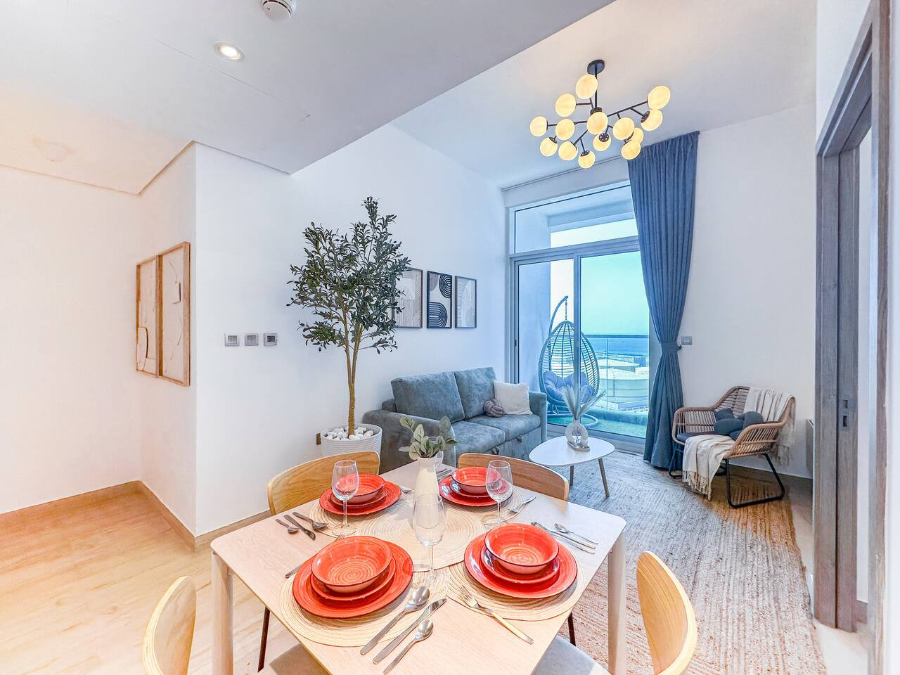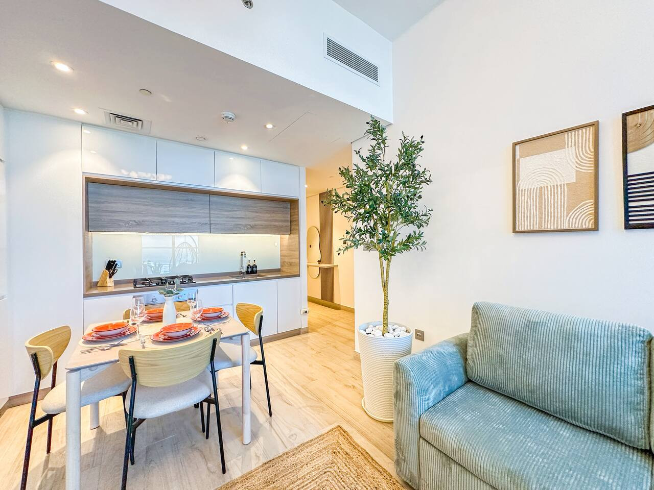 Sumérgete en un ambiente sofisticado y cómodo desde el primer momento. La espaciosa sala de estar se conecta con un balcón que ofrece vistas panorámicas al canal, creando el lugar perfecto para descansar tras un día descubriendo Dubai Marina.