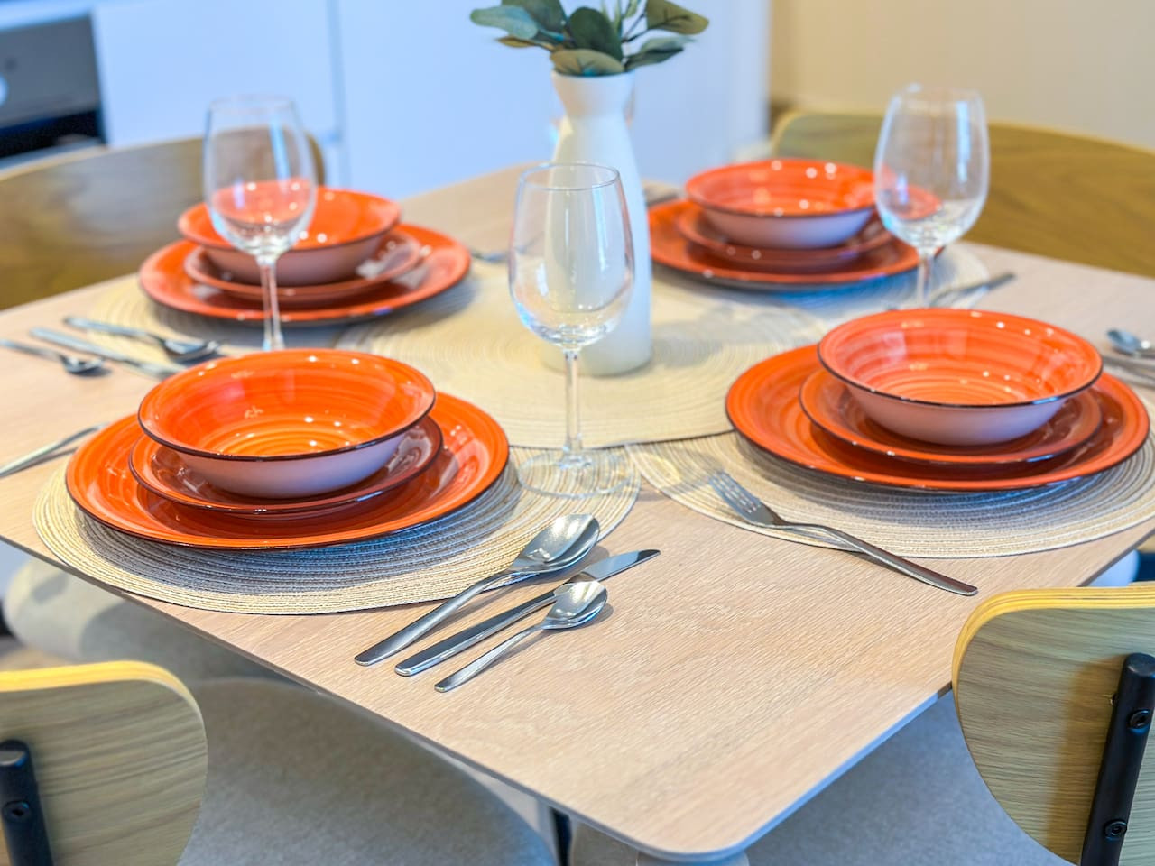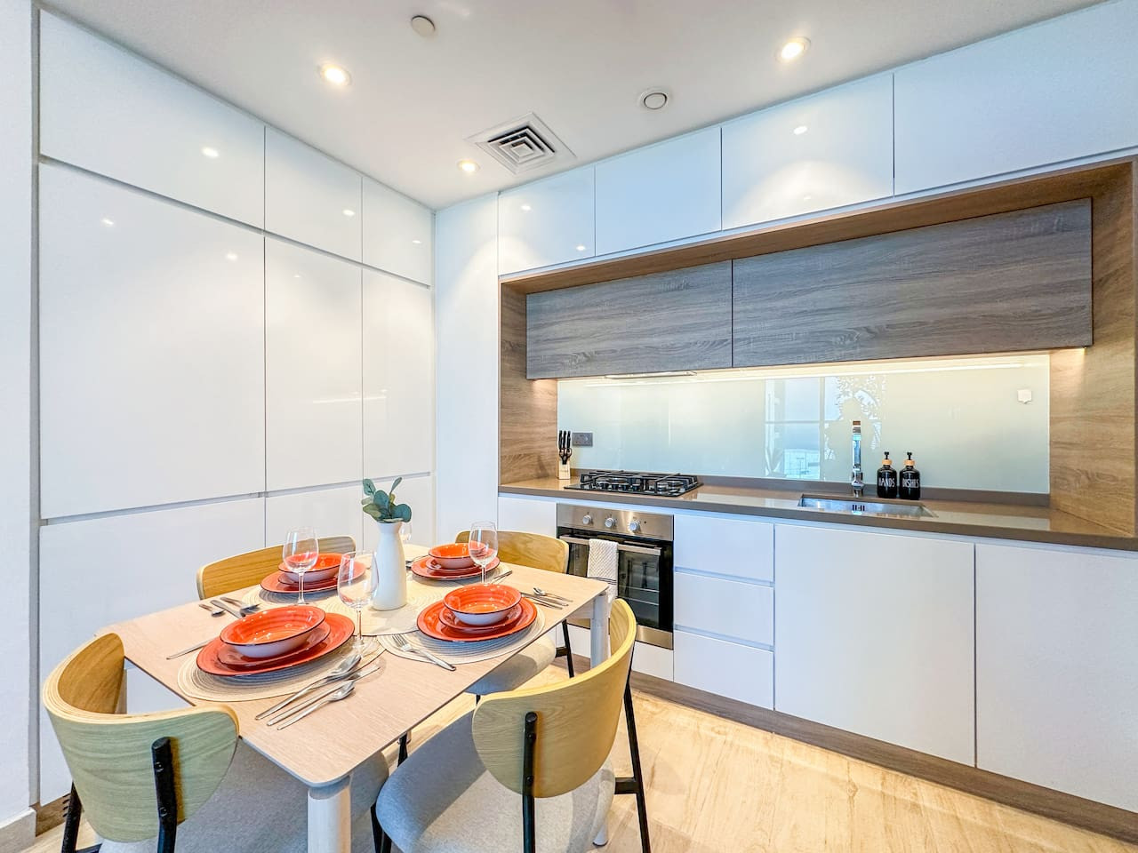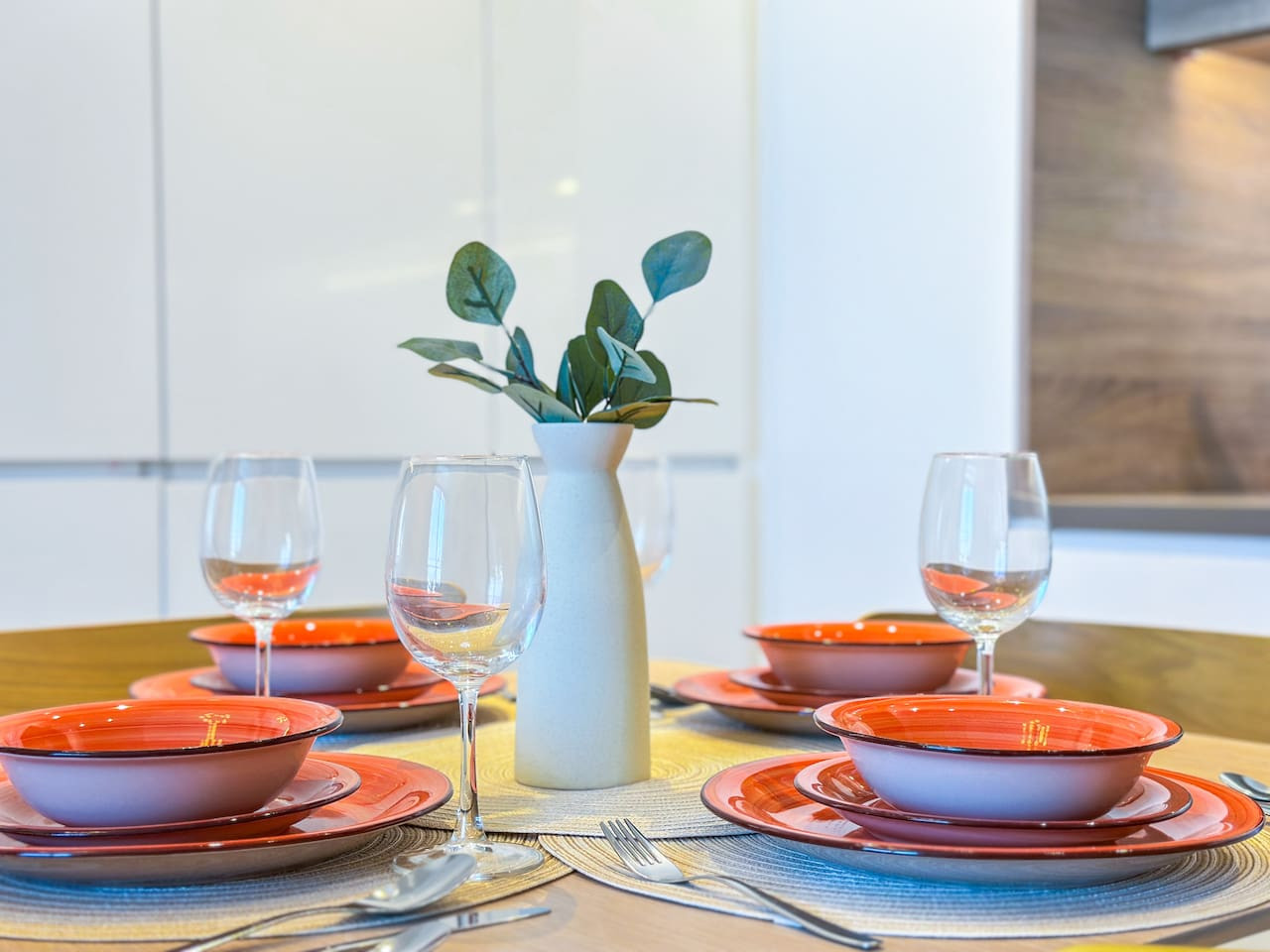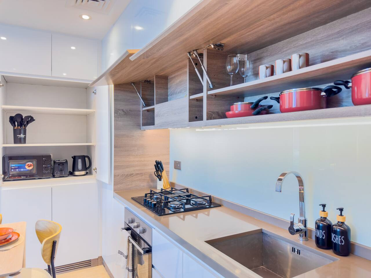 La cocina, moderna y completamente equipada, ofrece todo lo necesario para una estadía cómoda. Prepare sus platillos favoritos con facilidad utilizando los electrodomésticos de última generación y disfrute de una deliciosa cena en casa.