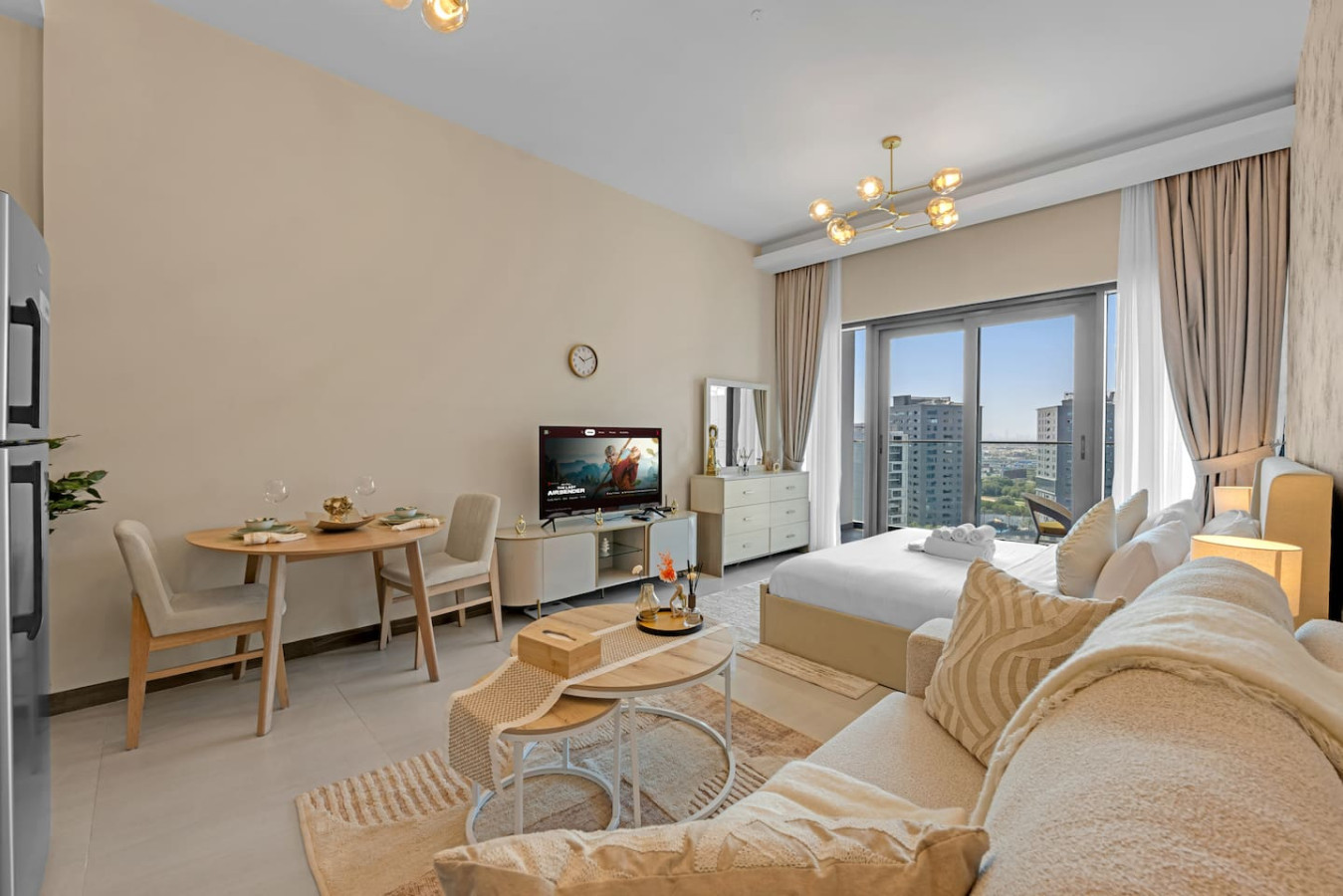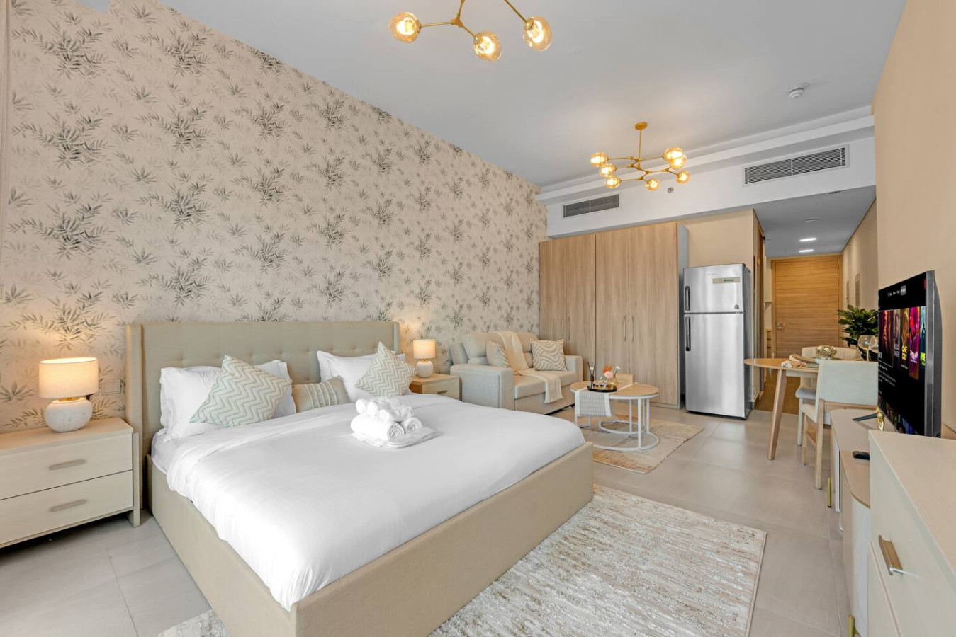 Featuring a cozy living space with a comfortable bed, a fully equipped kitchenette, high-speed Wi-Fi, a smart TV, and a private bathroom, it’s the ideal home base for exploring Dubai.