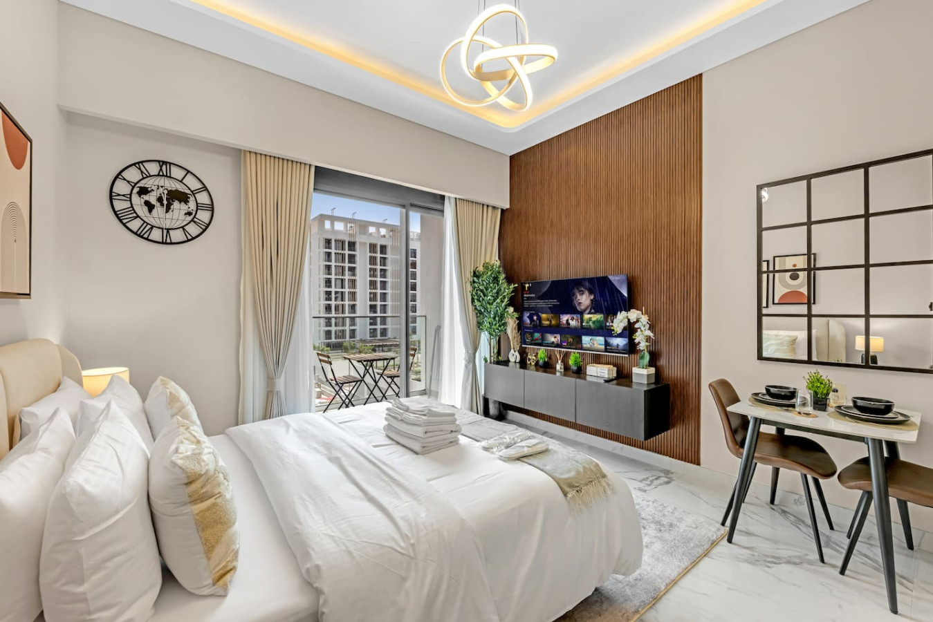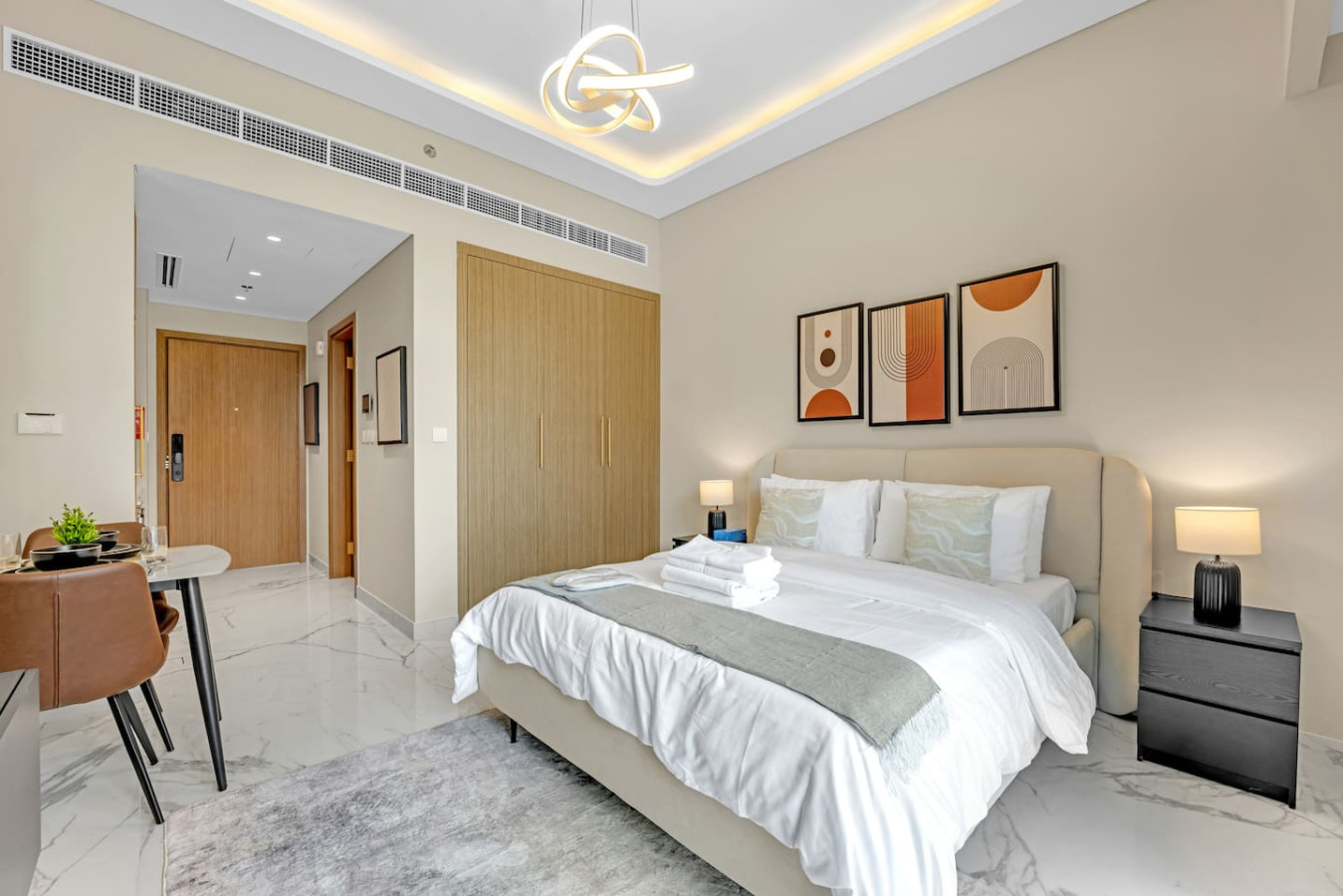 Step into a chic urban sanctuary in the heart of Dubai. This thoughtfully curated studio combines modern design with luxurious touches—featuring a sumptuous bed, a kitchenette, and a contemporary bathroom with spa-quality amenities.