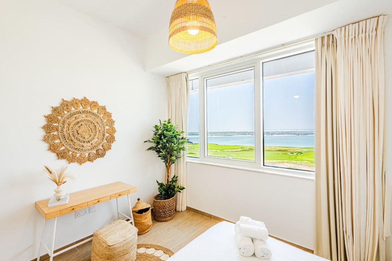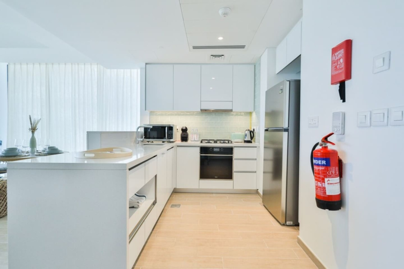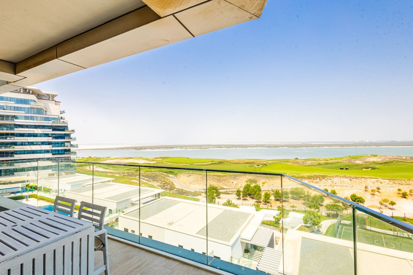 This breathtaking apartment in Mayan – Yas Island Abu Dhabi hosts scenic views of the beach and golf course, capacity for 6 people. The property is equipped with the following items: Smart TV, balcony furniture, iron, internet (Wi-Fi), Children area, gym / fitness Centre, air-conditioned, swimming pool communal, private parking space in the building basement. The kitchen, is equipped with refrigerator, oven, freezer, washing machine, dishes/cutlery, kitchen utensils, toaster and kettle.