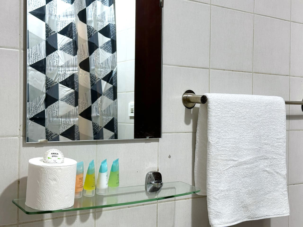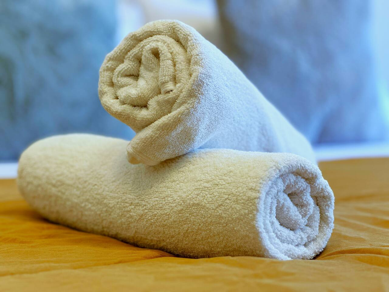 > Toallas limpias y artículos de tocador básicos