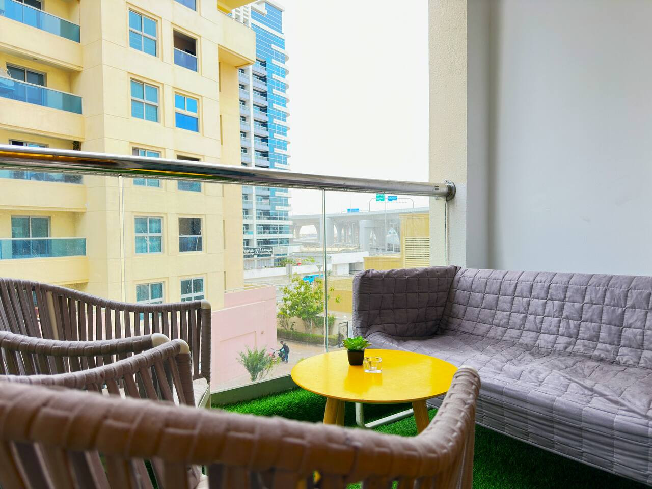 Relax on the huge balcony with stunning views of the marina channel, and take advantage of the prime location to explore the best of Dubai Marina and JBR. We are just 8 minutes walk from the DMCC metro and 5 minutes walk from the beach.